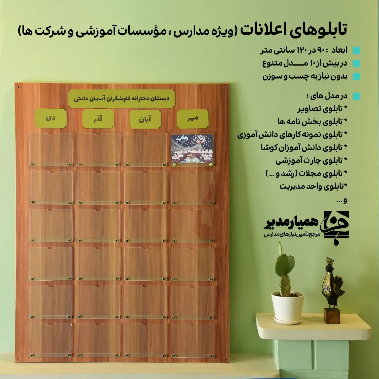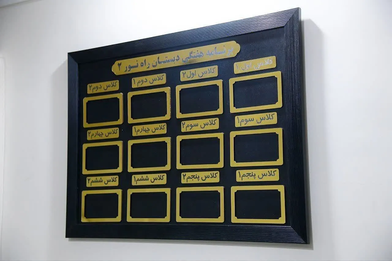 📰 این تابلوها معمولاً در مکانهای پرتردد مانند راهروی اصلی یا مقابل دفتر مدرسه نصب میشوند.