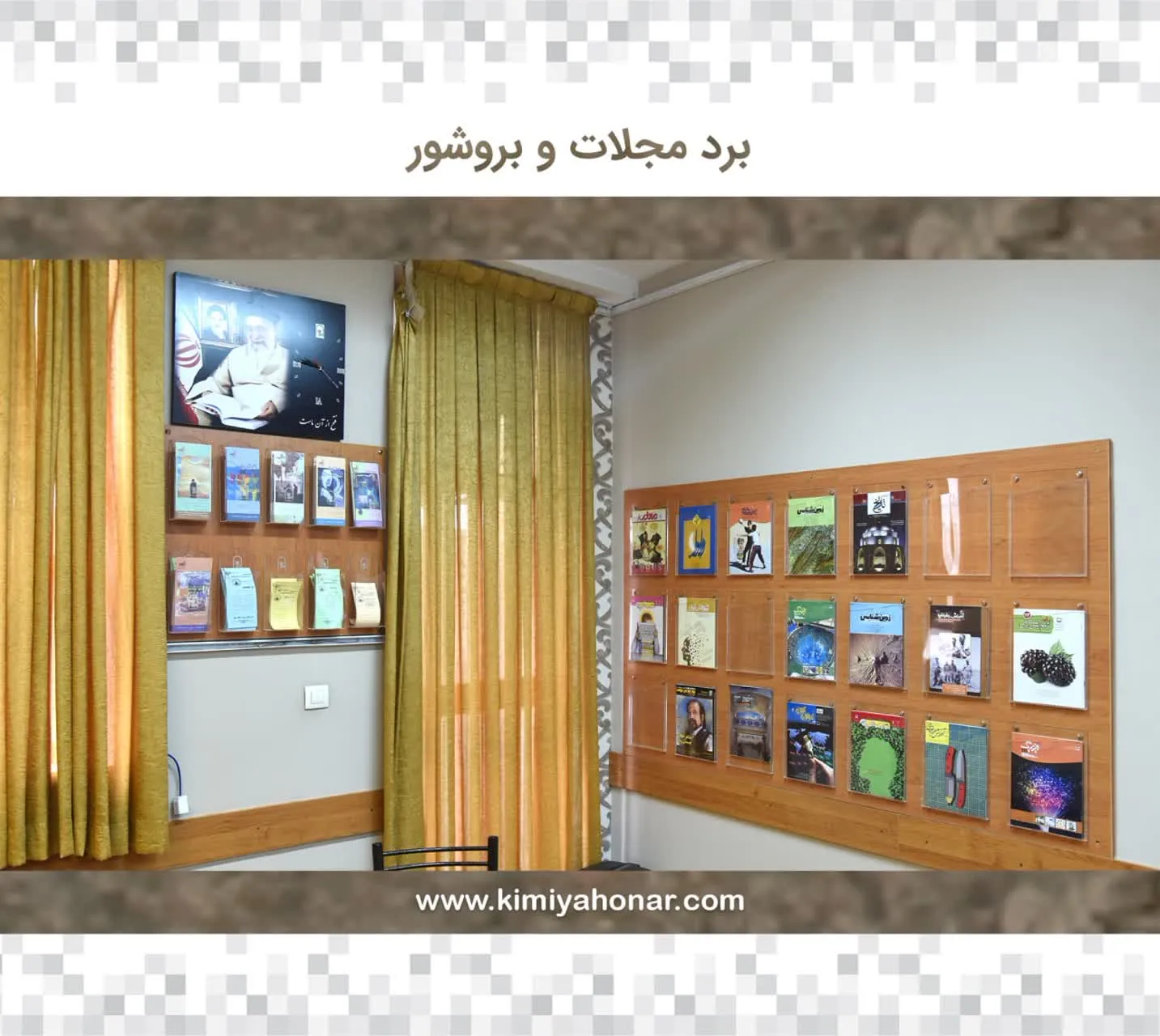 ویژگیها: قفسه یا استند با محافظ شیشه، تفکیک مجلات بر اساس موضوع (آموزش ابتدایی، متوسطه اول، متوسطه دوم).
