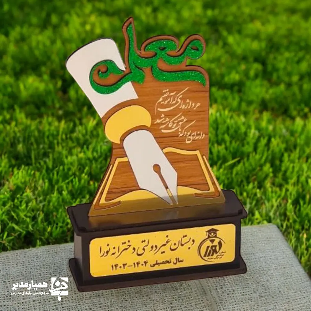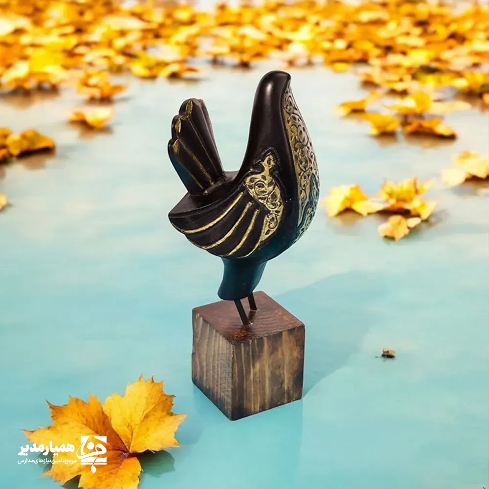 تندیس چوبی معلم با میناکاری طرح بته جقه