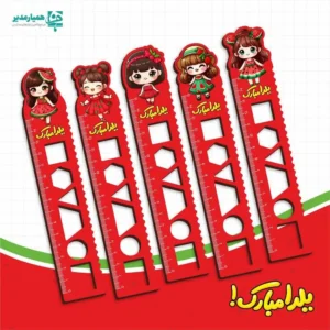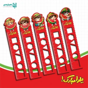 خطکش شابلوندار یلدایی با طرحهای بانمک هندوانه و انار، هدیهای کاربردی و شاد برای دختران و پسران در شب یلداست. مناسب برای مدرسه، هدیه و تزئین پکهای یلدایی 🎁🍉