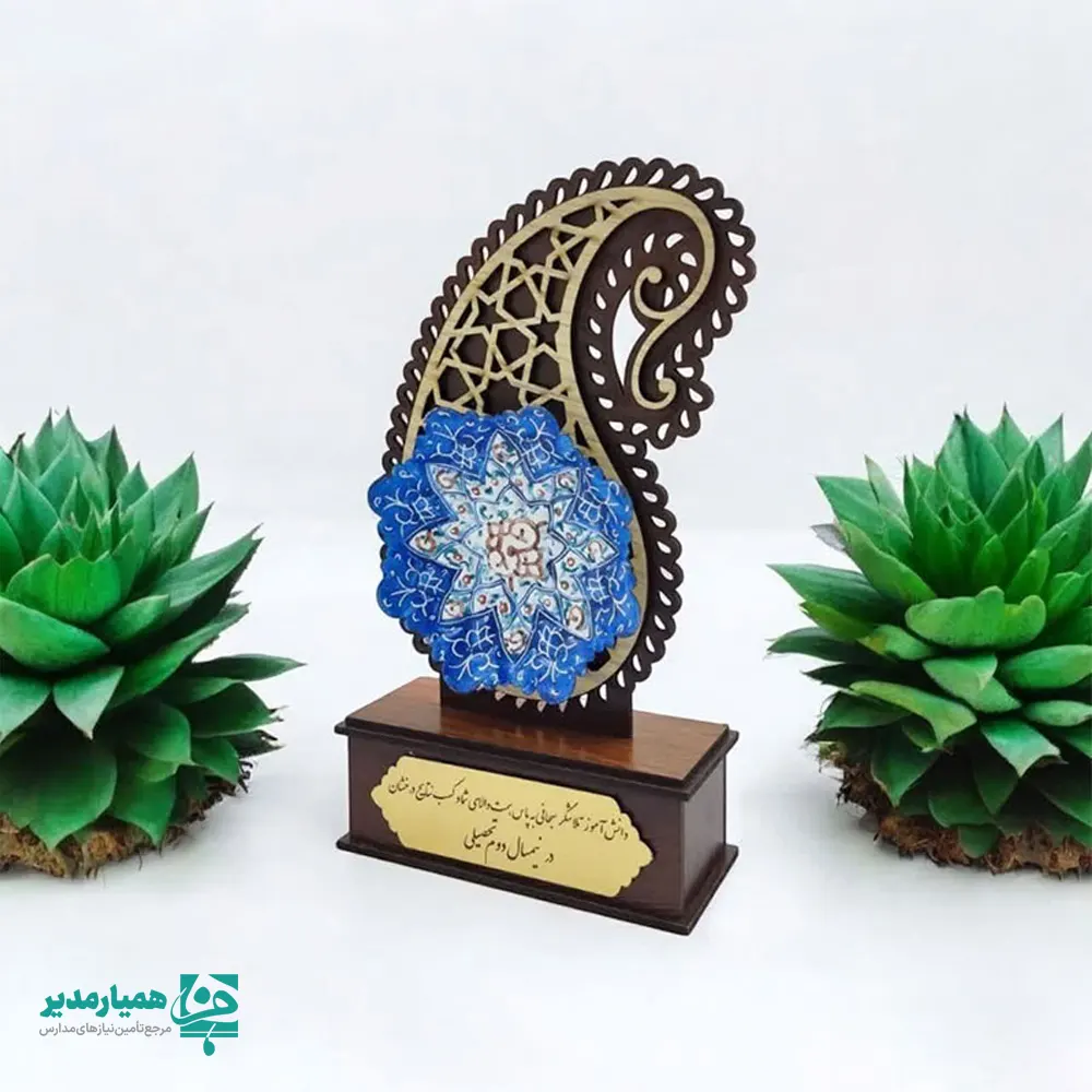 تندیس چوبی معلم با میناکاری طرح بته جقه