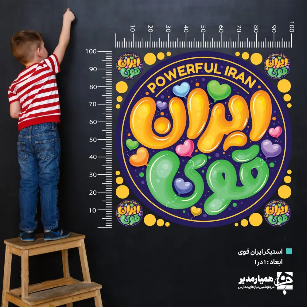استیکر «ایران قوی» با طراحی فانتزی، شاد و انگیزشی، یک پیام ملی و الهامبخش را به زیبایی منتقل میکند. در مرکز طرح، عبارت «ایران قوی» با حروف سهبعدی و براق در دو رنگ زرد طلایی و سبز زمردی قرار گرفته که انرژی، نشاط و قدرت را القا میکند.