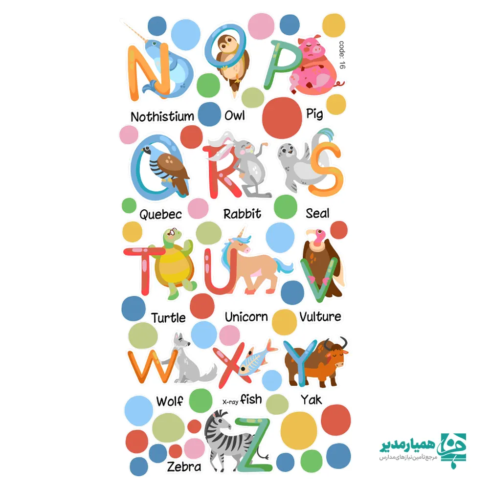 با این استیکر علاوه بر زیبا سازی فضای کلاس های زبان می توان در راستای آموزش حروف الفبای انگلیسی نیز کمک شایانی به دانش آموزان و معلمان کلاس های زبان شود .