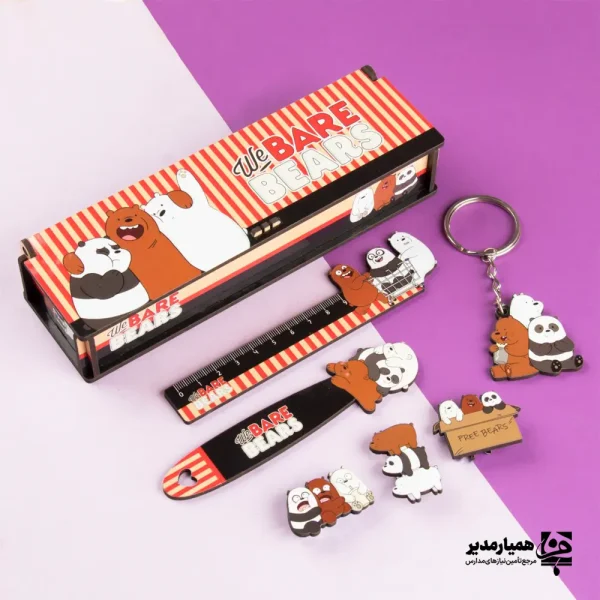 🐻🐼❄️ ست ۵ تکه فانتزی طرح خرسهای کلهفندقی – We Bare Bears شامل جامدادی، سرکلیدی، نشانگر کتاب، پیکسل سوزنی و خطکش — جذاب، کاربردی و پر از انرژی مثبت!