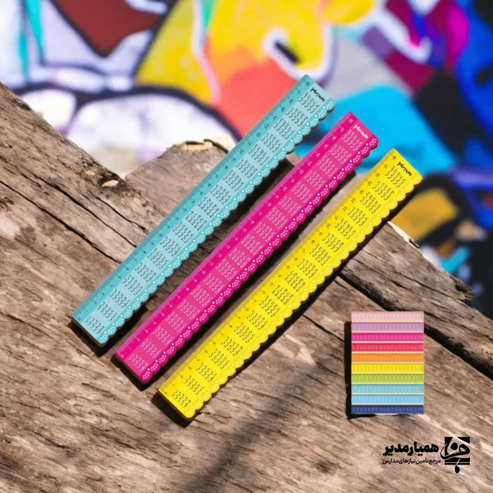 📏🌈 خطکش چوبی جدول ضربدار ۲۸ سانتیمتر؛ ابزاری کاربردی و رنگارنگ که هم خطکشی میکند و هم جدول ضرب را همیشه دمدستتان دارد!