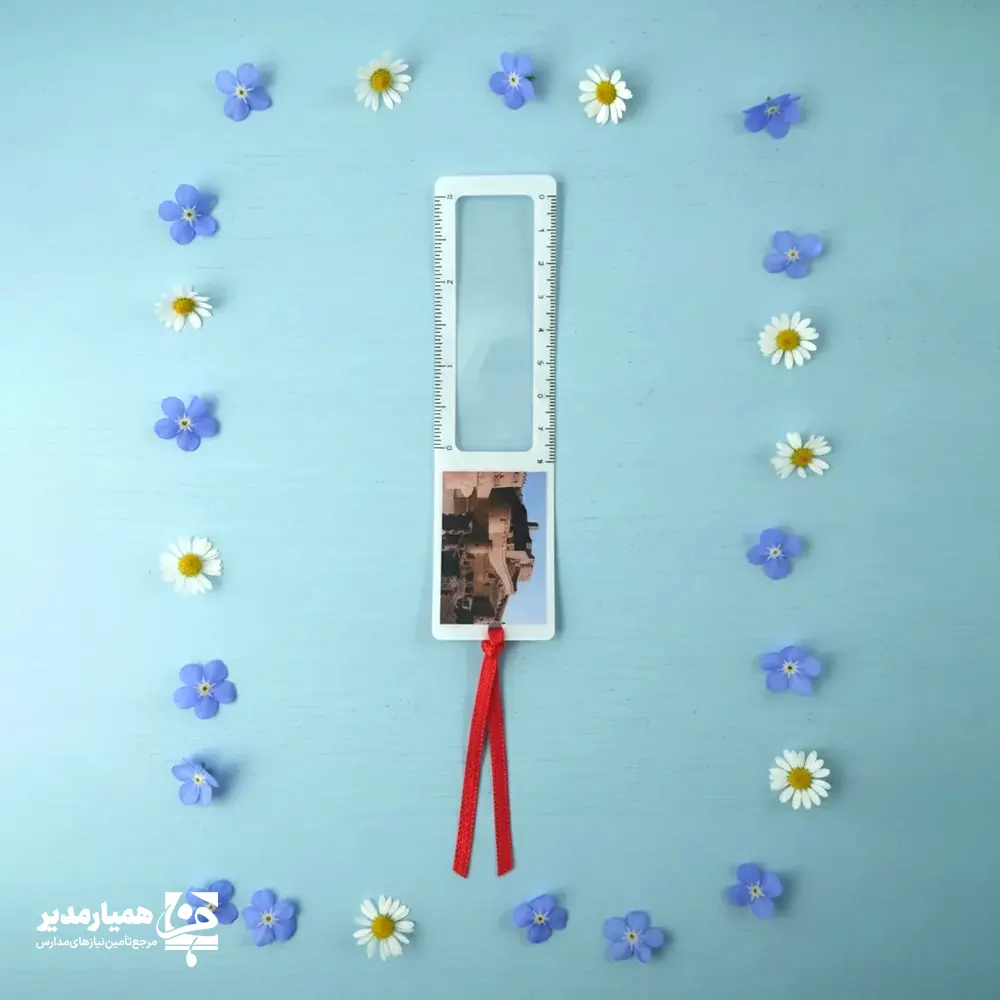 - ویژگیها: خطکش + نشانگر کتاب + ذرهبین