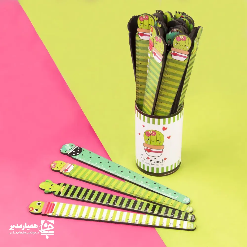 این محصول شامل ۳۰ خطکش چوبی با طرحهای بامزه کاکتوس است که در یک لیوان مقوایی قرار گرفتهاند. خط کش کاکتوسی برای هدیه به دانشآموزان دبستان و پیش دبستان بسیار مناسب می باشد . طراحی شاد و منحصربهفرد این محصول آن را به یک هدیه دانش آموزی کاربردی و جذاب برای جشنهای مختلف مانند جشن شکوفهها، روز دانشآموز و روز کودک تبدیل کرده است. امکان حک اسم دانش آموز یا لوگوی مدرسه روی این محصول، آن را به گزینهای مناسب برای هدایا و یادبودهای خاص تبدیل می کند. از گذشته تا به امروز خط کش به عنوان یکی از اصلیترین لوازمالتحریر به شمار می آید. لازم به ذکر است خط کش میوه ای به عنوان نشانگر کتاب نیز قابل استفاده می باشد.