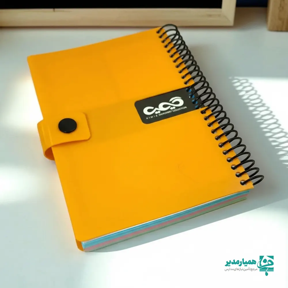 با جلد طلقی باکیفیت و دکمه محکم برای جلوگیری از بیرون ریختن برگهها؛ امکان چاپ نام و لوگوی مدرسه یا سازمان بر روی جلد.