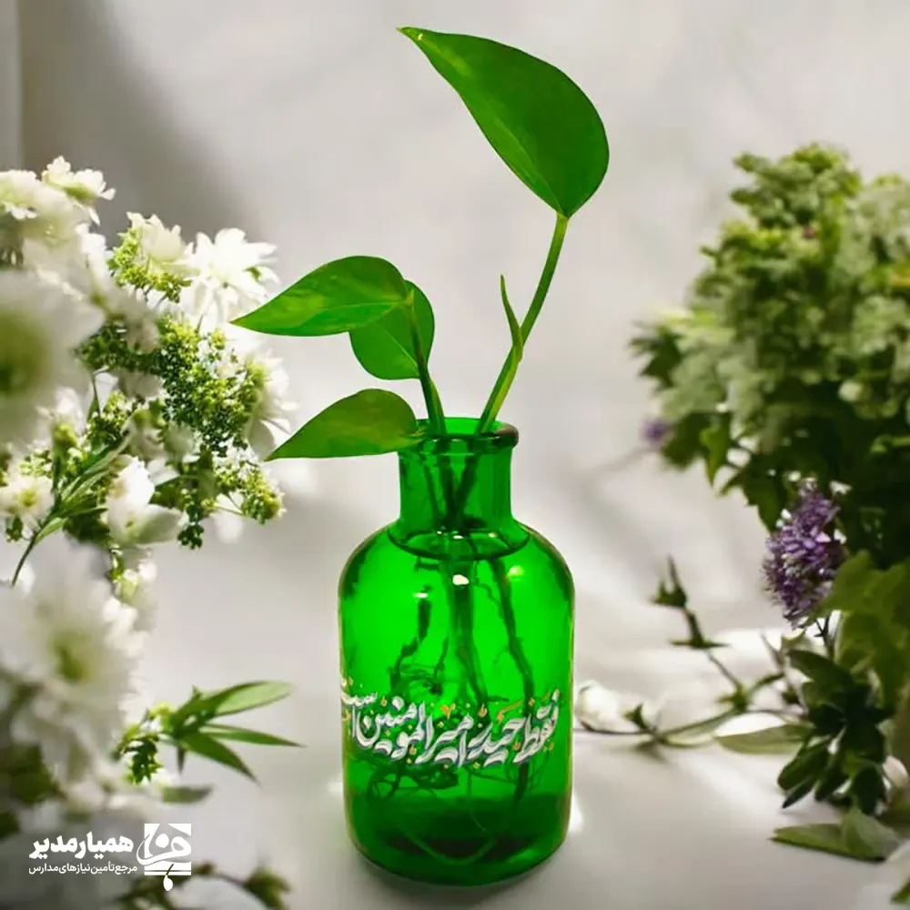 گلدان شیشهای با ذکر زیبای «فقط حیدر امیرالمؤمنین (ع)»