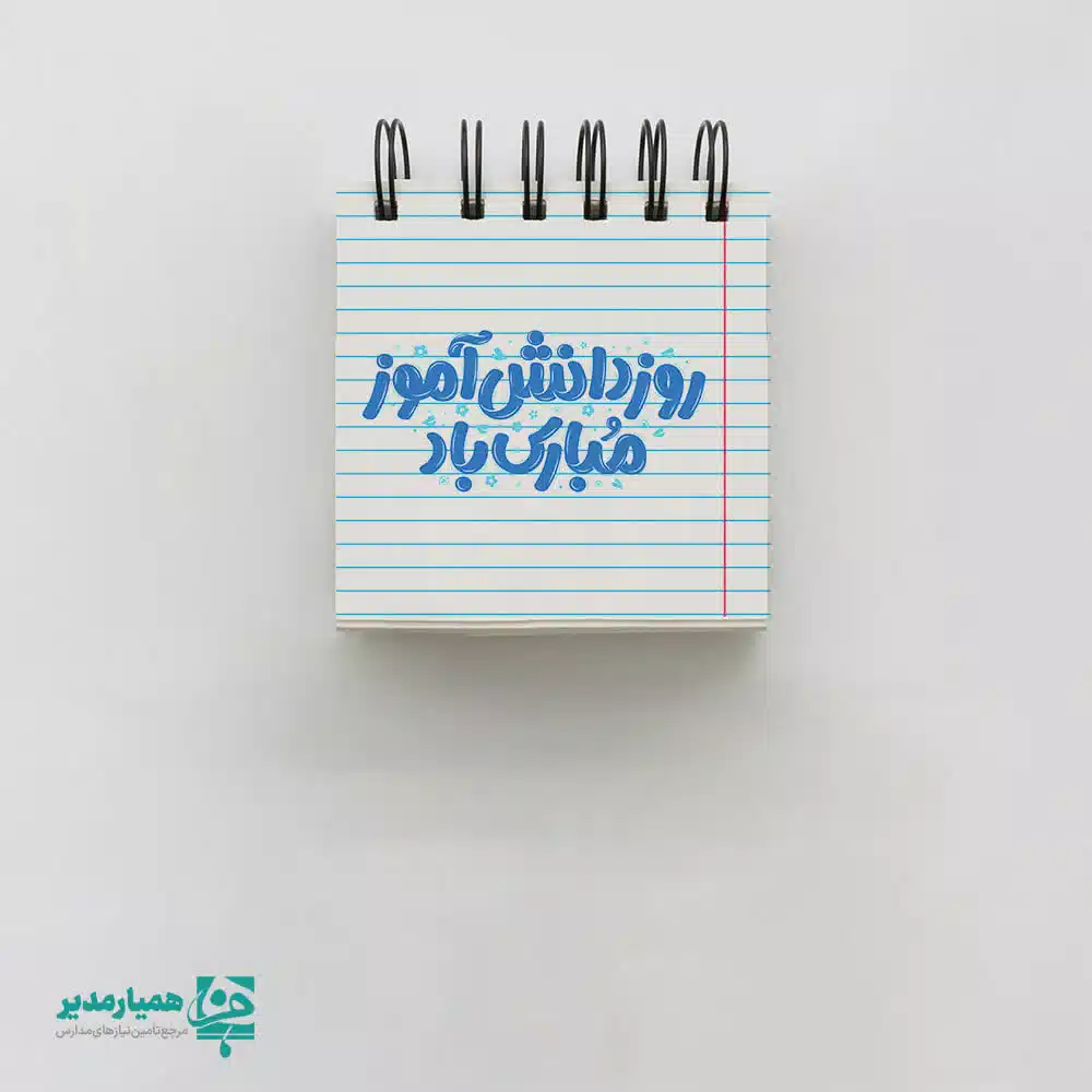 دفتر خط دار سفید با جلد اختصاصی مدرسه محصول فرهنگی از موسسه کیمیا هنر برای روز دانشآموز است. این دفتر در سایز 5*5 سانتیمتر و دارای ۵۰ برگ، با طراحی اختصاصی و امکان درج نام مدرسه و اطلاعات آموزشی، هدیهای خلاق و کاربردی برای دانشآموزان است.