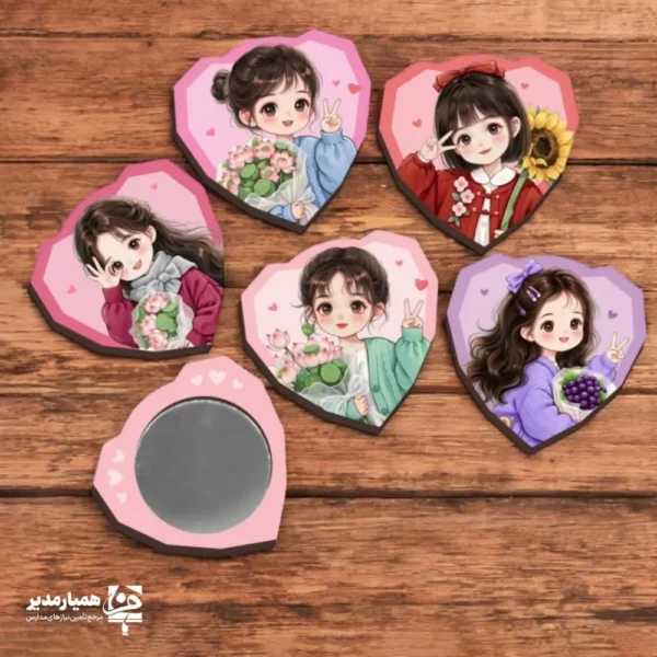 آیینه جیبی فانتزی دختر قلبی – هدیهای لطیف و زیبا برای روز دانشآموز