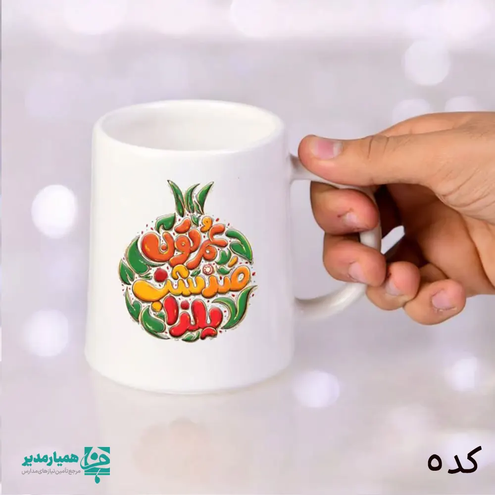 ماگ هتلی یلدایی با طراحی چشمگیر و چاپ فانتزی، یکی از محبوبترین گزینهها برای هدیه دادن در جشنهای مخصوص مدارس است 🍉🌙. ترکیب رنگهای سبز، قرمز و نارنجی در قالب طرحهای هنری یلدا، حالوهوای این شب سنتی را به زیبایی در محصول بازتاب میدهد.