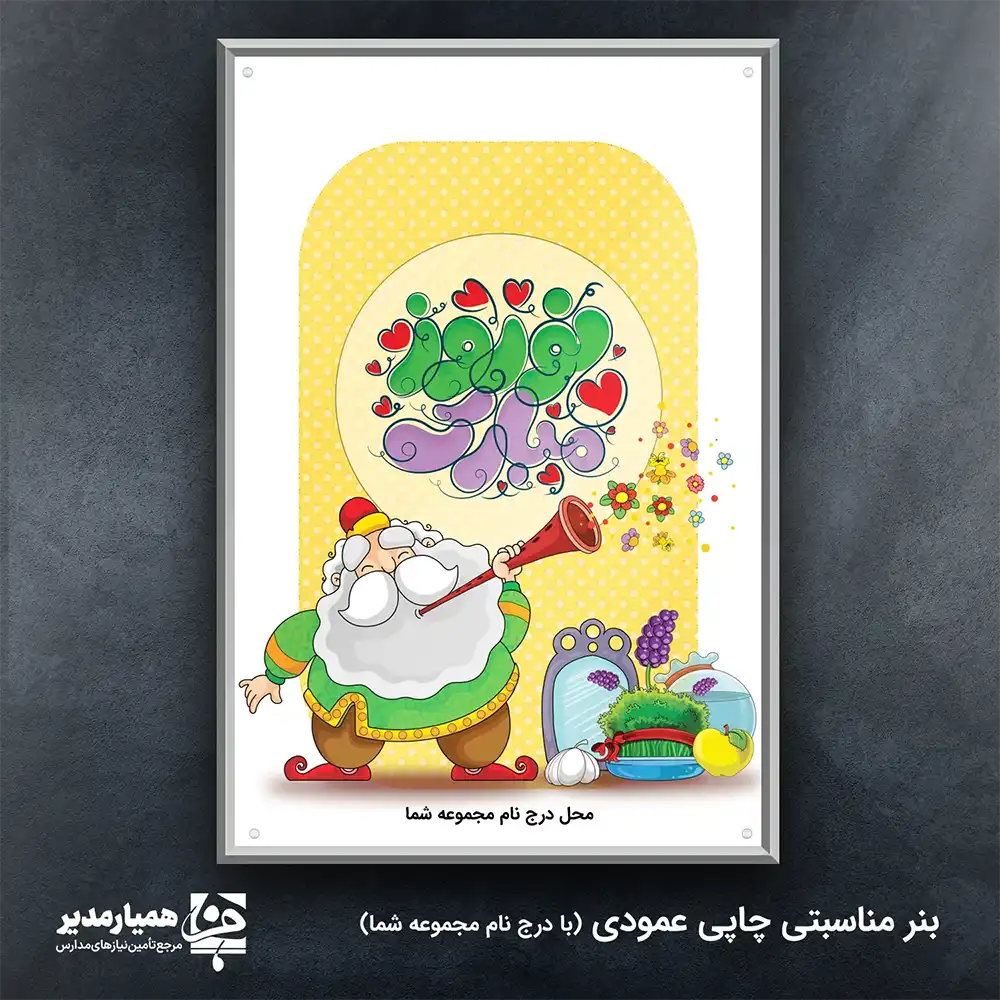 🌸🎈 بنر نوروز مبارک فانتزی ویژه مدارس ابتدایی یکی از محصولات شاد، پرانرژی و محبوب مجموعه کیمیا هنر است که با طراحی کارتونی و کودکپسند، فضایی صمیمی و جذاب برای استقبال از عید نوروز در مدارس ابتدایی ایجاد میکند 🌱در طراحی این بنر، از نمادهای فانتزی نوروزی، رنگهای شاد و شخصیت کارتونی استفاده شده است تا ارتباط بصری خوبی با دانشآموزان مقطع ابتدایی برقرار کند 🎨😊یکی از ویژگیهای مهم این محصول، امکان درج نام مدرسه یا مجموعه آموزشی در بخش پایینی بنر است که آن را به یک بنر کاملاً اختصاصی و مناسب هویت مدرسه تبدیل میکند ✍️