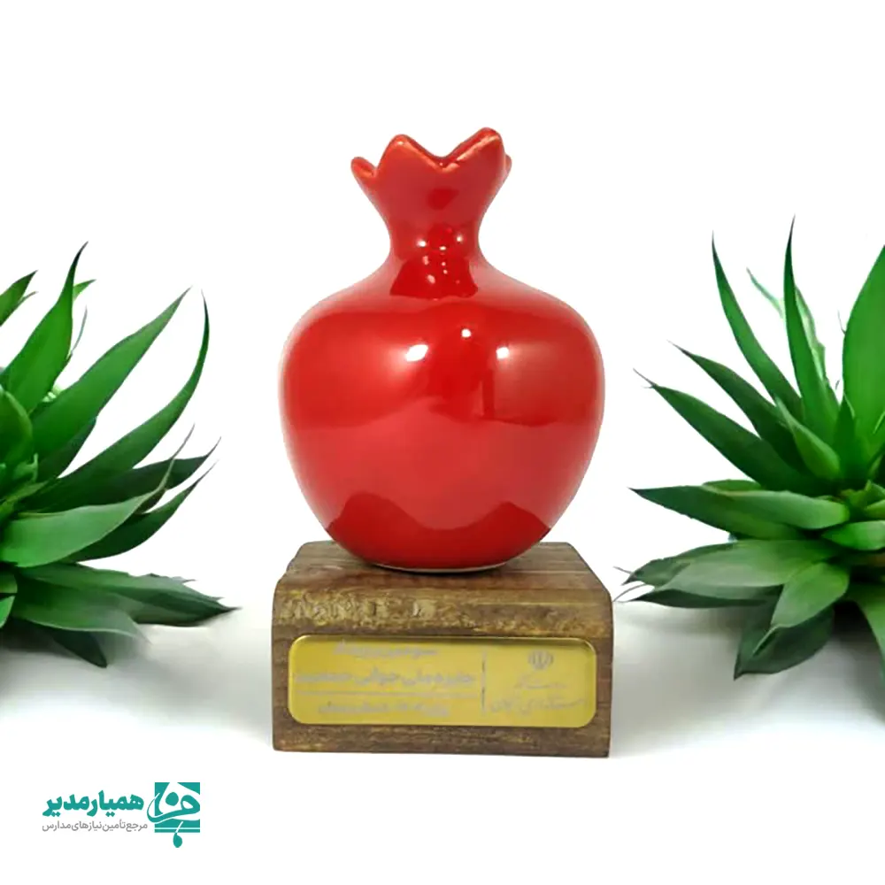 🍎 تندیس انار با پایه چوبی اختصاصی