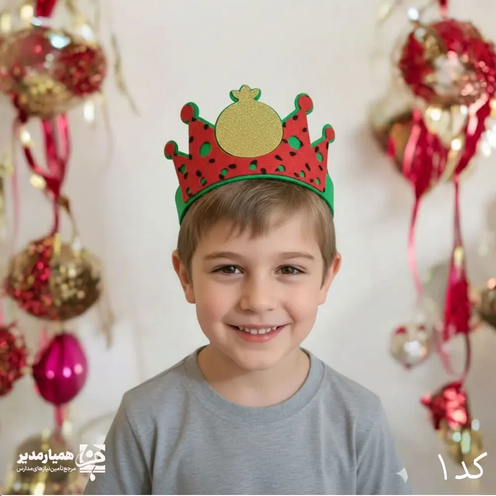 با این تاج شادی‌بخش، هر دانش‌آموز در جشن یلدای مدرسه، پادشاه یا ملکه‌ی لبخندها خواهد بود 👑🍉